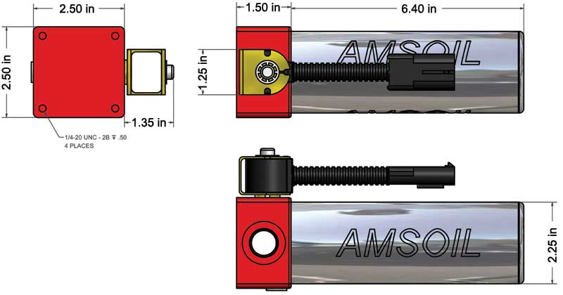 With an extremely rugged hi-grade carbon steel reservoir and anodized aluminum base, the AMS-Oiler® is crafted to withstand severe service and to perform reliably in any personal, commercial or industrial application. Unlike other pre-charger systems, the AMS-Oiler® has no bulky moving parts which need maintenance and does not rely on pressurized gas to function. Unlike air-actuated competitors, the AMS-Oiler® can be mounted at any angle and discharges oil even under the most severe conditions. The AMS-Oiler® is substantially smaller, more convenient to mount and safer than large, bulky, pressurized gas devices. Pressurized gas units AMS-Oiler® Oil Precharger By-Pass/Dual Remote Mounted (AMK-01) & Stand-Alone (AMK-02) range from 18 to 21 inches long with a diameter up to four inches, while the AMS-Oiler® is only about eight inches long and four inches wide. The AMS-Oiler® is a self-contained, streamlined unit that has a mechanical life cycle exceeding one million engine starts, with no maintenance required. The AMS-Oiler® is self-lubricating with an integrated overpressure protection device that protects units from retaining pressures in excess of 65 p.s.i.